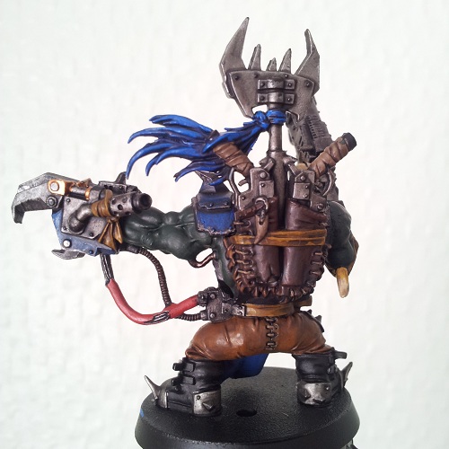 some extra tips on how to do this. One thing I’ve been having trouble achieving is the correct tone of skin that I want to achieve. With my orks I’ve aimed to be a little faithful to some of the background (aka ‘fluff’) that orks get bigger and darker as they get older. To my understanding this would mean that a Warboss is the biggest and subsequently darkest, followed by Nobz then Boyz & other troops then Gretchin being the lightest shade. I always find that ‘senior’ Ork models I see online are too bright for this. Sometime, I’ll show my Warboss next to one of my Nobz, Boyz and Gretchin so you can see the idea of the tones I aim for.