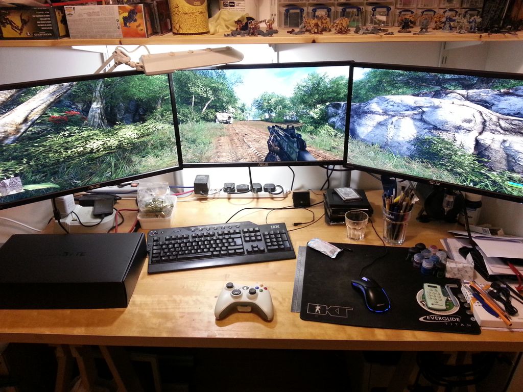 Firstly, I’ve invested in 3 identical 24 inch IPS monitors.